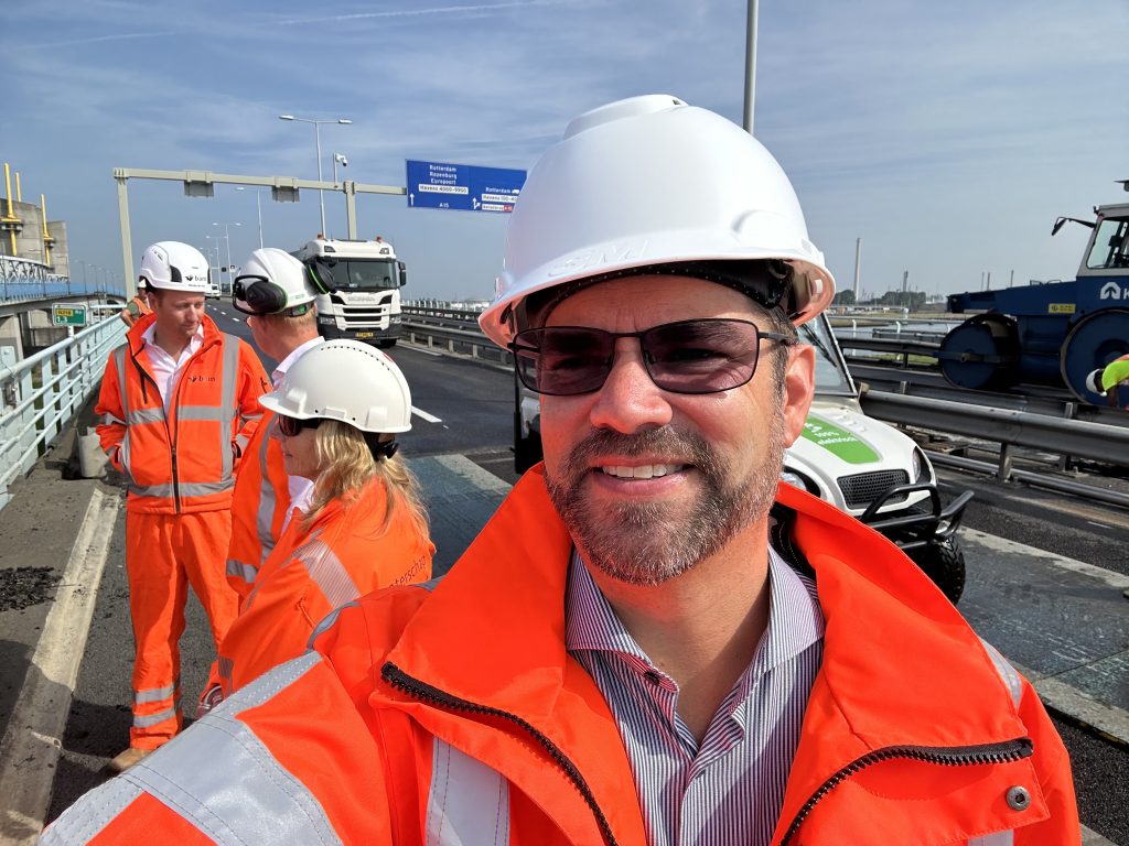 Wethouder Chris Hottentot was vanmorgen samen met Waterschap Hollandse Delta, het Havenbedrijf Rotterdam en Rijkswaterstaat te gast op de Hartelbrug. Tijdens het bezoek gaf de provincie Zuid-Holland een toelichting op de voortgang van de werkzaamheden aan de brug.