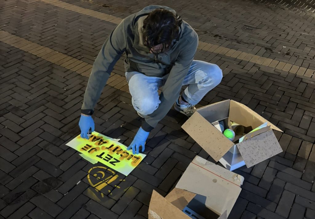 “Als fietser denk je misschien voldoende zelf te kunnen zien, maar zonder verlichting kan je over het hoofd worden gezien met alle gevolgen van dien,” stelt de partij. De gebruikte spuitkrijt is milieuafbreekbaar en zal in een paar weken vervagen.